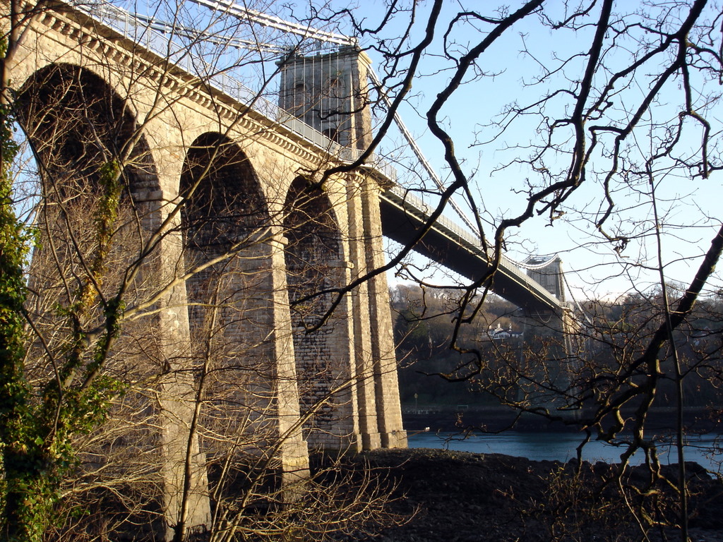 The old bridge is something to behold, especially if you get down to the shore level and look up at it, as its true grandeur can then be appreciated. You can walk across it too, which gives great views up to the 'new' Britannia Bridge and down to Beaumaris and Bangor Pier. At some times of the day you'll see the infamous 'Swellies', whirlpool-like currents caused by the narrowness of that part of the Strait.